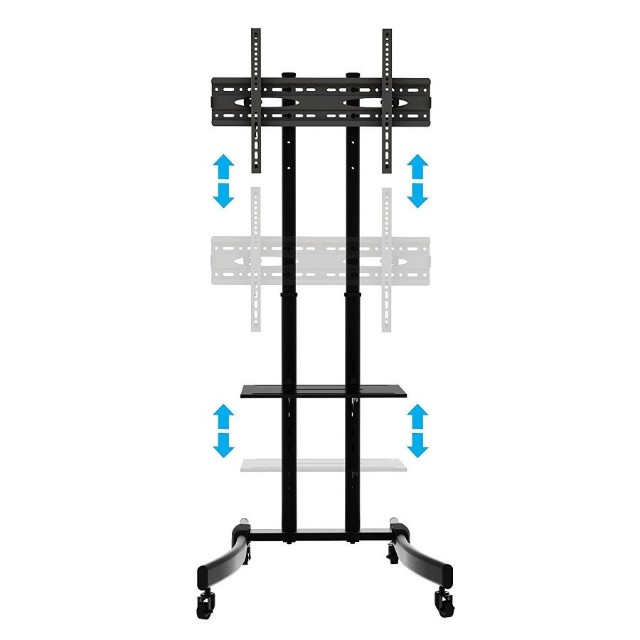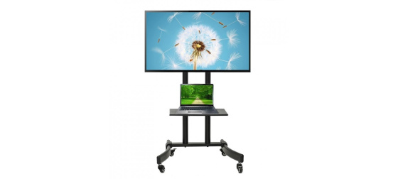 Podlahový pojízdný stojan na televize 32" až 65", nastavitelná výška televize 89/96/114cm, polička 485x295mm, pojízdný, VESA 200x100 až 600x400, nosnost 40kg.Více