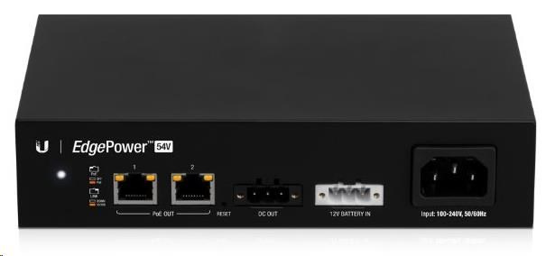 Pro připojení napájených zařízení jsou k dispozici 2 ethernetové porty s možností pasivního 54V PoE Out, rychlostí 100Mbps a 1 výstup na svorkovnici. EdgePower je možné spravovat přes aplikaci UNMS nebo ve vlastním webovém rozhraní. Samozřejmostí je podpora protokolu SNMP.