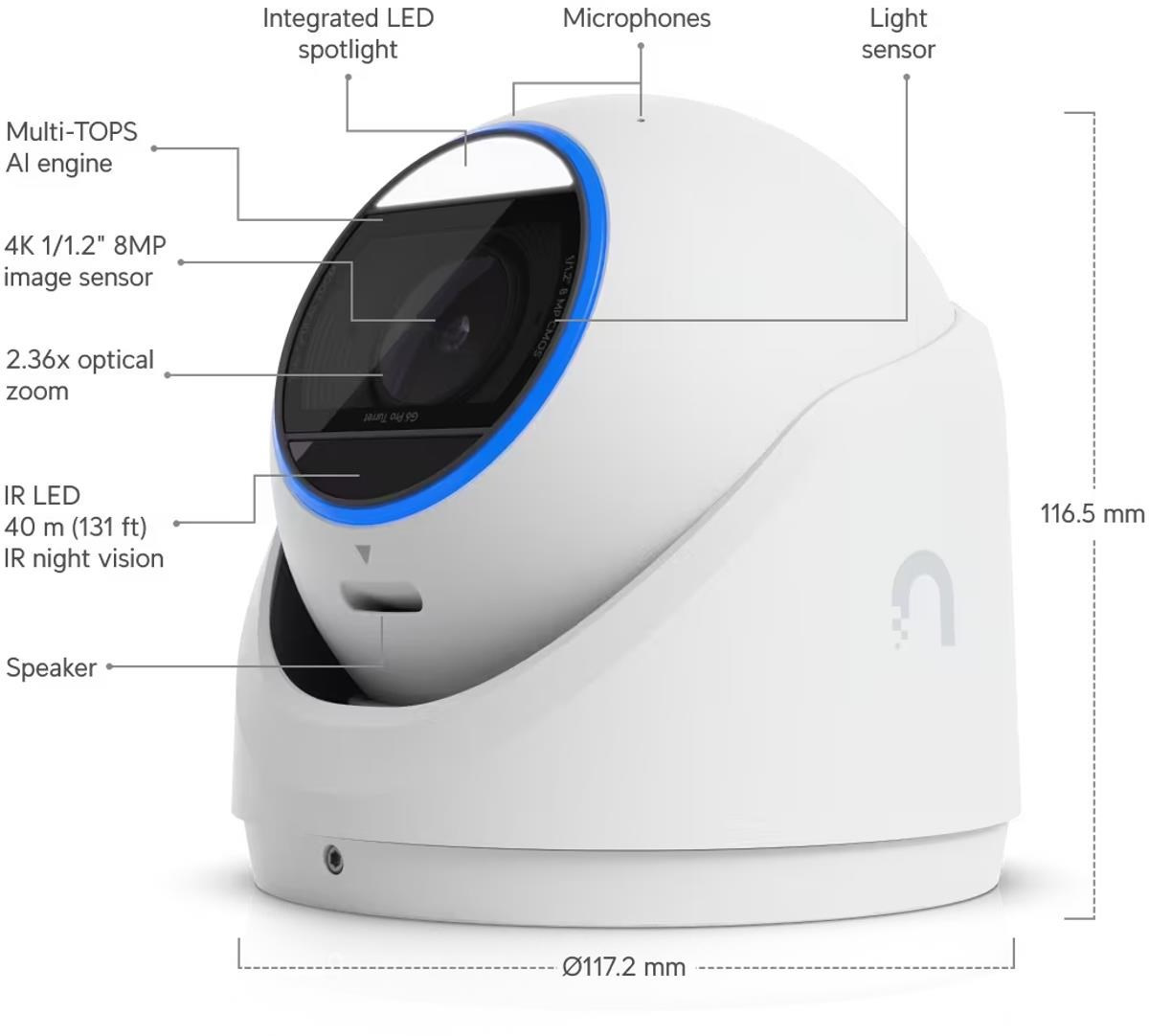 Popis UBNT G6 Pro Turret, UniFi 8MP IP kamera, bílá