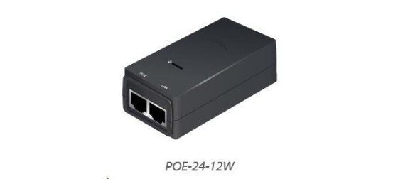 Velmi kvalitní stabilizovaný PoE napájecí adaptér s možností zemnění, indikační LED výstupního napětím 24V/0,5A. Maximální výstupní výkon činní 12W. Pomocí tlčítka "reset" je možné uvést zařízení do továrního nastavení, případně pouze restarovat jednotku. Tlačítko reset umožňuje také přepnutí zařízení do TFTP režimu pro opravení poškozeného firmwaru.