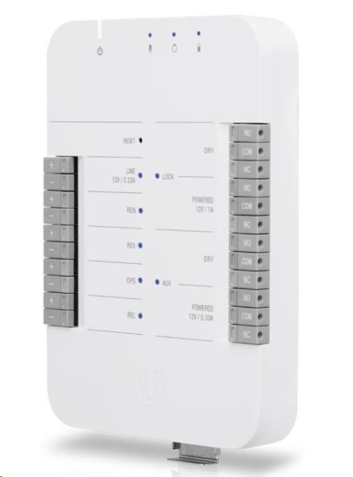 UniFi Access Hub je základní komponenta k instalaci přístupového systému UniFi Access. UniFi Access Hub je inteligentní jednodveřový IP kontroller, který je kompatibilní s většinou elektrických zámků, magnetických zámků a s celou řadou 12V příslušenstvím jako jsou pohybové senzory, tlačítka a alarmy. Instalace je velmi rychlá, snadná a nabízí jednoduchou správu uživatelů, návštěvníků, plánů a úrovní či oprávnění přístupů přes UniFi Access Controller. Hub je napájen přes PoE, které není součástí dodávky.