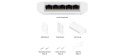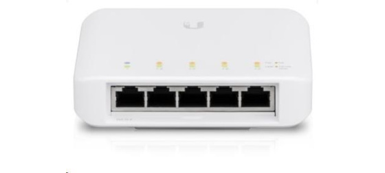 USW-FLEX je 5-portový venkovní Gigabitový switch s možností PoE-In a PoE-Out na 4 portech. Switch umožňuje na výstupních portech aktivní napájení typu 802.3af, což dává celkově 15.4W na každém portu.