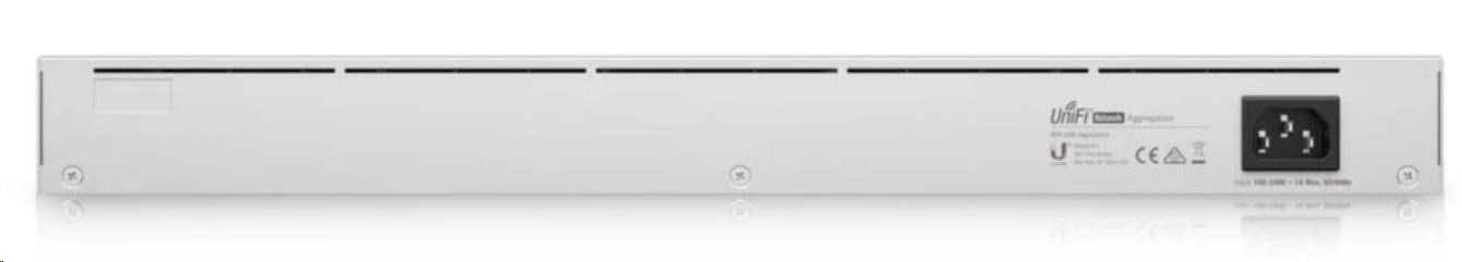 UniFi Switch Aggregation je agregační managovatelný L2 UniFi Switch s 8x SFP+ sloty podporující rychlost 1G/10Gbps. Velmi kompaktní a bezventilátorové 19" rackmount provedení doplňuje informační dotykový displej schopný zobrazovat statistiky jednotlivých portů, chybových stavů, vytížení sítě a dalších informací.