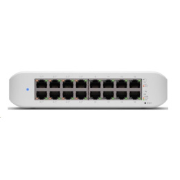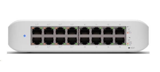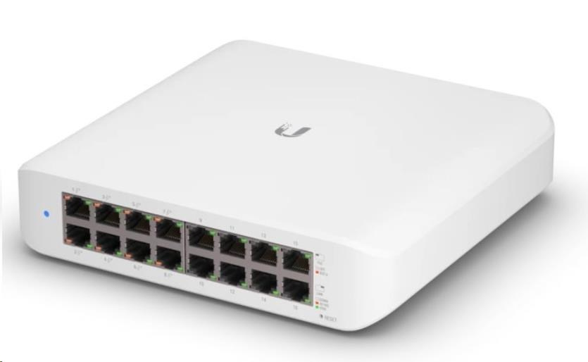 USW-Lite-16-PoE je Gigabitový PoE L2 Switch od Ubiquiti Networks v desktop provedení s maximálním PoE budgetem 45W. Managovatelný switch s 16 Gigabit metalickými porty a celkovou propustnost 16 Gbps. Pouze 8 portů z 16ti podporuje PoE napájení 802.3af/at s maximálním výkonem 30W/port. Switch je díky nízkému PoE budgetu vhodný spíše jako datový s napájením pár zařízení na okraji sítě