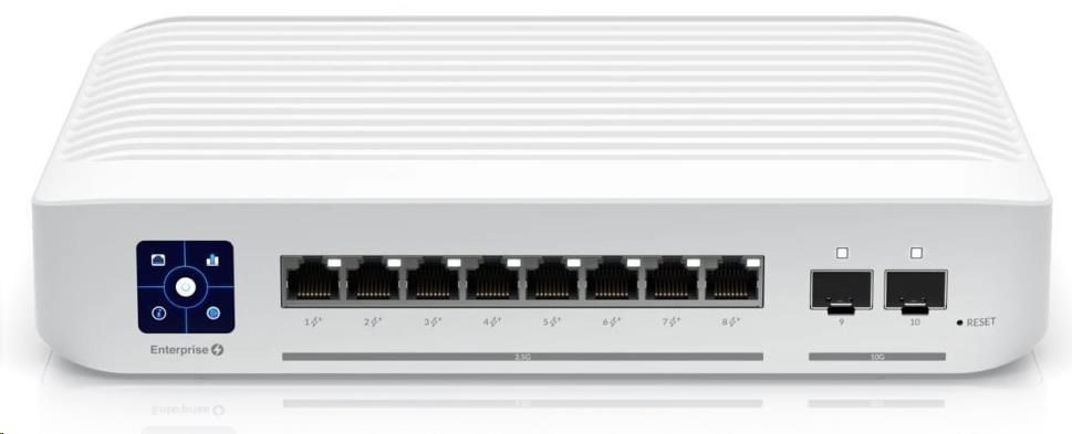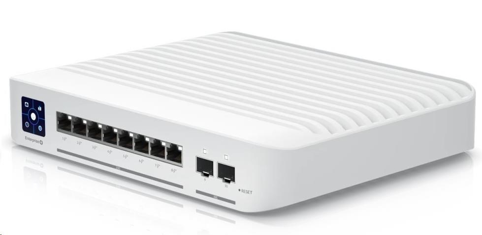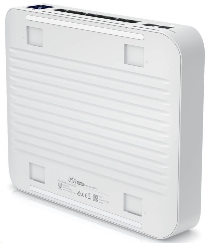 UniFi Switch Enterprise 8 PoE je spolehlivý switch s managementem v desktop provedení. Jedné se o konfigurovatelný výkonný L3 přepínač s kapacitou 80 Gbps, rychlostí směrování 59,52 Mpps a 1,3" dotykovým displejem.