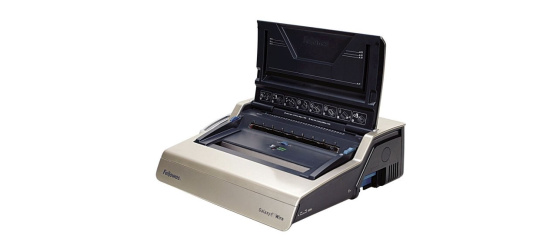 Elektrický vazač pro vazbu do kovových hřbetů s roztečí ok 3/1" (5,5 mm – 16 mm). Uživatelsky velice příjemný. Vhodný pro intenzivní využití. Děrovací kapacita až 20 listů 80 g papíru. Kapacita vazby až 130 listů. Vertikální vkládání listů pro lepší setřesení svazku a doraz svazku usnadňují bezchybnou perforaci. Široký půdorys stroje zabezpečuje dobrou stabilitu při děrování. Děruje čtveraté otvory 4×3 mm. Stroj je vybaven velkým zásobníkem na uložení hřbetů a integrovanou měrkou pro správnou volbu průměru hřbetu. Součástí balení sada 20 obálek a hřbetů.. Fellowes, Inc., 1789 Norwood Avenue Itasca, IL 60143-1095 USA, inquiries@fellowes.com