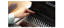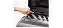 Stroj je vybaven větším zásobníkem na uložení několika plastových hřbetů a integrovanou měrkou pro správnou volbu průměru hřbetu.