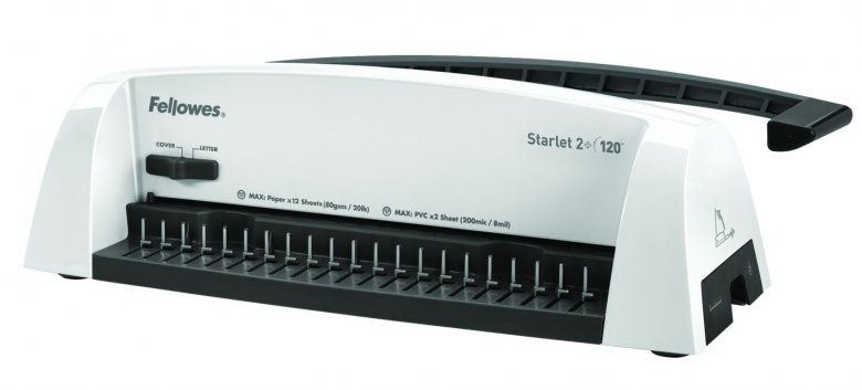 Základní model nové designové řady vázacích strojů Fellowes pro příležitostnou vazbu. Děrovací kapacita až 12 listů 80 g papíru. Kapacita vazby až 120 listů ( do velikosti hřbetu 16 mm). Vazač má dvě přednastavené pozice – pro děrování formátu A4 a A5. Oddělená děrovací a vázací páka pro průběžné vkládaní děrovaných listů do plastového hřbetu výrazně zefektivňuje práci. Díky delší děrovací páce je třeba k děrování minimum síly. Stroj je vybaven integrovanou měrkou pro správnou volbu průměru hřbetu.. Fellowes, Inc., 1789 Norwood Avenue Itasca, IL 60143-1095 USA, inquiries@fellowes.com