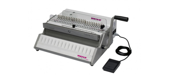 Robustní vázací a děrovací stroj s perforací 2/1". Elektrický pohon děrovacího nástroje. Určen pro vazbu do kovových hřbetů s roztečí ok 2/1" (6,9 mm – 38 mm). Otevřené postranice pro možnost vazby věších formátů než A4. Vhodný pro vazbu svazků až do 330 listů.