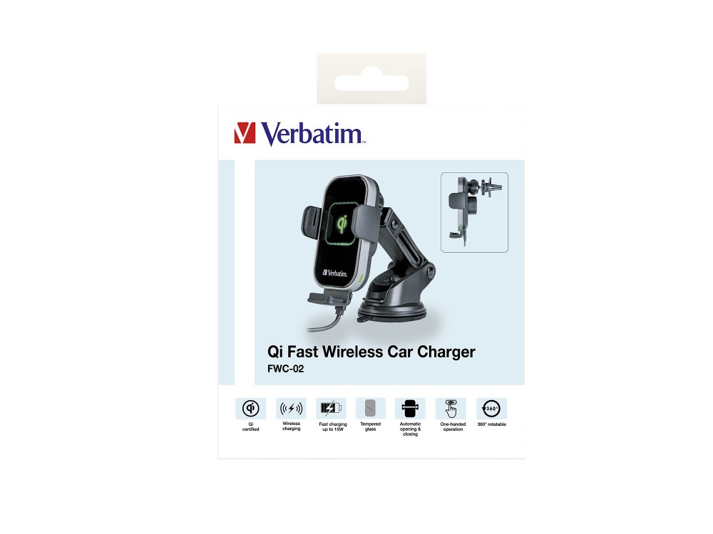 Rychlonabíjecí držáky telefonu Verbatim využívají vysokorychlostní dobíjecí technologii Qi poskytující bezpečné a rychlé dobíjení vašeho telefonu s operačním systémem Android či iPhone Vysoce kvalitní dobíjecí držák umožňuje hands-free telefonáty a snadné prohlížení GPS map a zároveň rychle nabije váš chytrý telefon s technologií Qi.