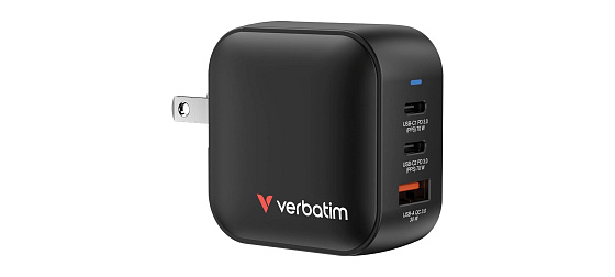 Mini GaN nabíječka Verbatim s výkonem 70 W kombinuje dva porty USB-C® a jeden port USB-A v kompaktním kapesním provedení. Porty USB-C podporují technologii PD 3.0 (Power Delivery) s výkonem 70 W, zatímco port USB-A podporuje technologii QC 3.0. Dokáže nabíjet až 3 zařízení současně. Ideální do kanceláře, domů nebo na cesty k napájení tabletu, smartphonu, herních zařízení a dalších zařízení.