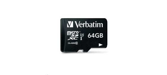 Verbatim Pro U3 Micro SDHC/SDXC Cards Verbatim Pro microSD memory cards give Pro level performance to action cameras, camcorders, smart phones & tablets. UHS Speed Class 3 (U3) rating means you can capture 4k ultra HD and Full HD video then transfer quickly to your computer for viewing and editing. Compatible with any device with an SDHC/SDXC* memory card slot. Verbatim Pro microSD memory Cards are waterproof & shockproof. microSD to SD adapter included. Read Speed: up to 90MB/Sec.** Write Speed: up to 45MB/Sec.** Suitable for 4k ultra HD video capture *SDXC compatible host device required **UHS-1 compatible device required, actual performance may vary depending on host device, interface & usage conditions Product Dimensions: 11mm x 15mm x 1.0mm (L x W x H) (microSD only) Product weight: 1.6 grams (microSD+ adapter) Capacity: 64GB System requirements: Compatible with smart phones, tablets, mobile phones, and other microSDHC/SDXC compatible devices. Verbatim GmbH, Hugenottenstraße 9 63263 Neu-Isenburg Německo, support@verbatim.com