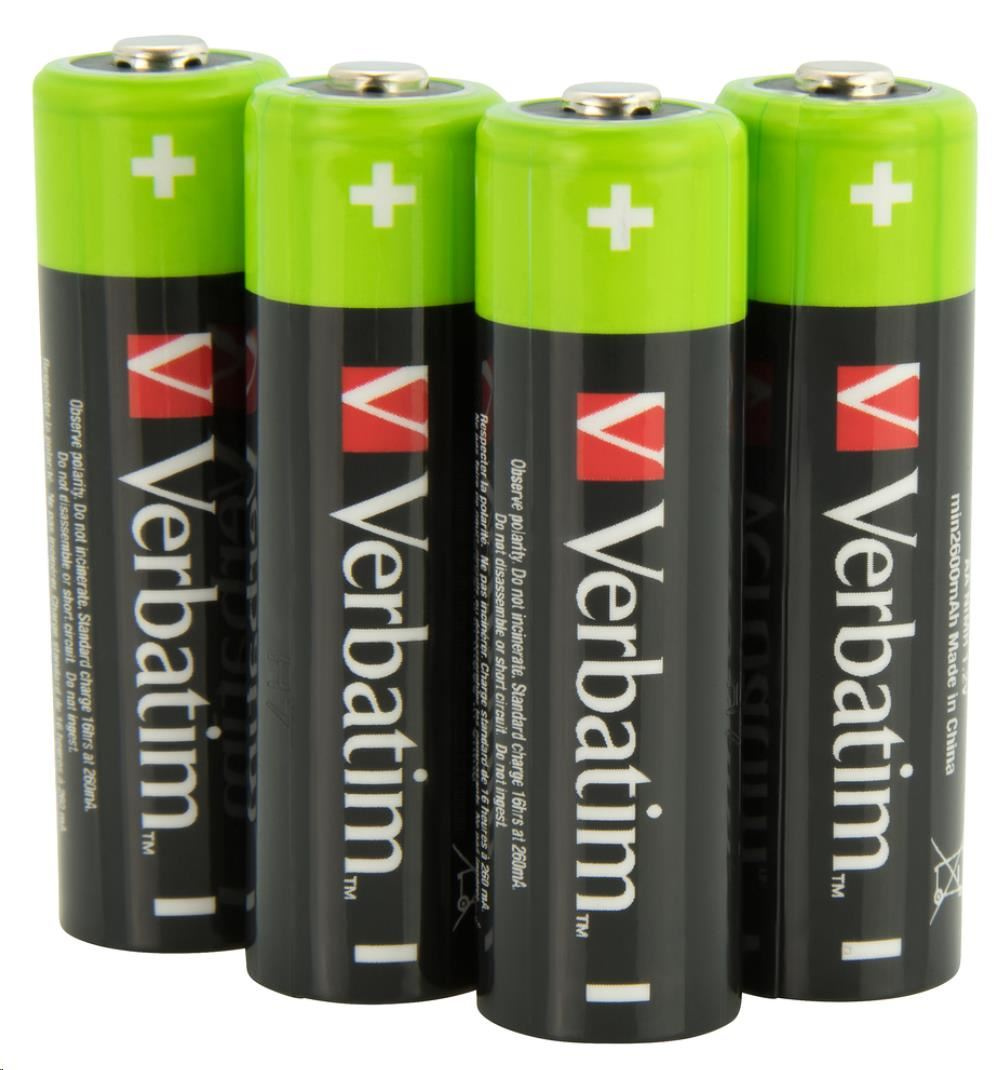 Popis VERBATIM Nabíjecí baterie AA Premium 4-Pack 2500 mAh