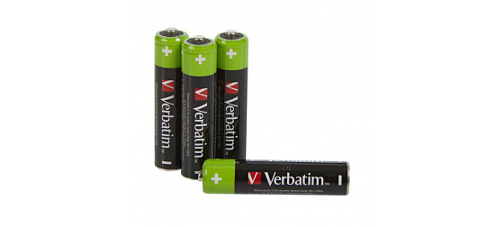 Produkt:Baterie; Typ baterie:Nabíjecí; Velikost článku:Mikrotužková; Kapacita (mAh):950; Typ článku:Alkalický; Obsah balení:4. Verbatim GmbH, Hugenottenstraße 9 63263 Neu-Isenburg Německo, support@verbatim.com