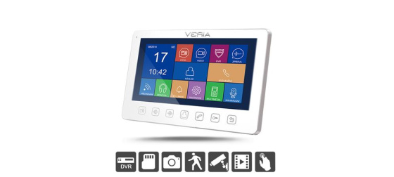 Unikátní ultra tenký videotelefon v elegantním designu se 7" displejem, který na rozdíl od vyšší řady (modelu VERIA - 7077) používá k ovládání dotykových kláves. Stejně tak jako model VERIA 7077 i model VERIA 7076 spojuje hned několik velmi zajímavých funkcí do jednoho přístroje. Ovládání videotelefonu je snadné díky menu kompletně v českém jazyce.