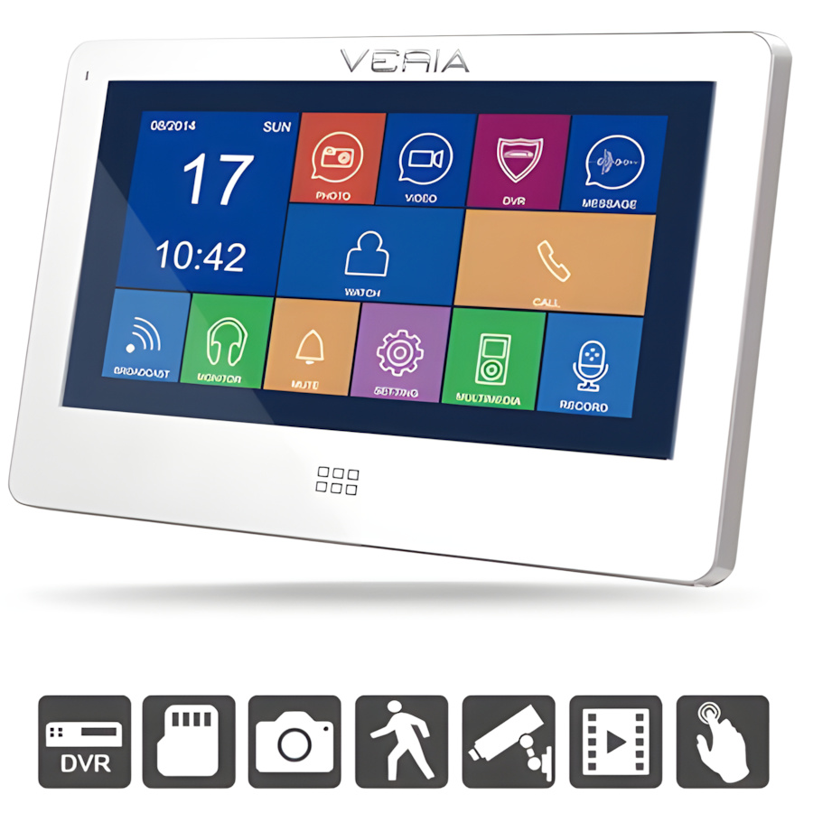 Veria 7077B je moderní dotykový LCD monitor videotelefonu, který kombinuje bezpečnost, komfortní komunikaci a pokročilé DVR funkce pro efektivní dohled nad vaším domovem.