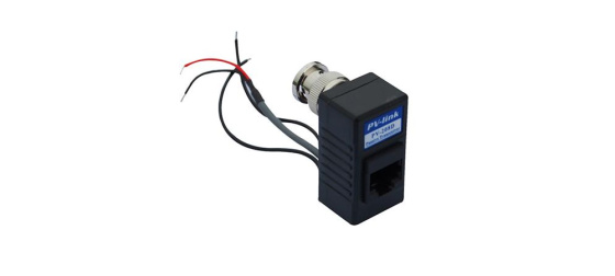 Pasivní převodník video na kroucený pár - BNC samec na RJ45, podporuje přenos napájení DC12V / AC24V dosah 330m. Veria, Čechova 1005/4, 750 02 Přerov, Česká republika, mailto: info@veria.eu