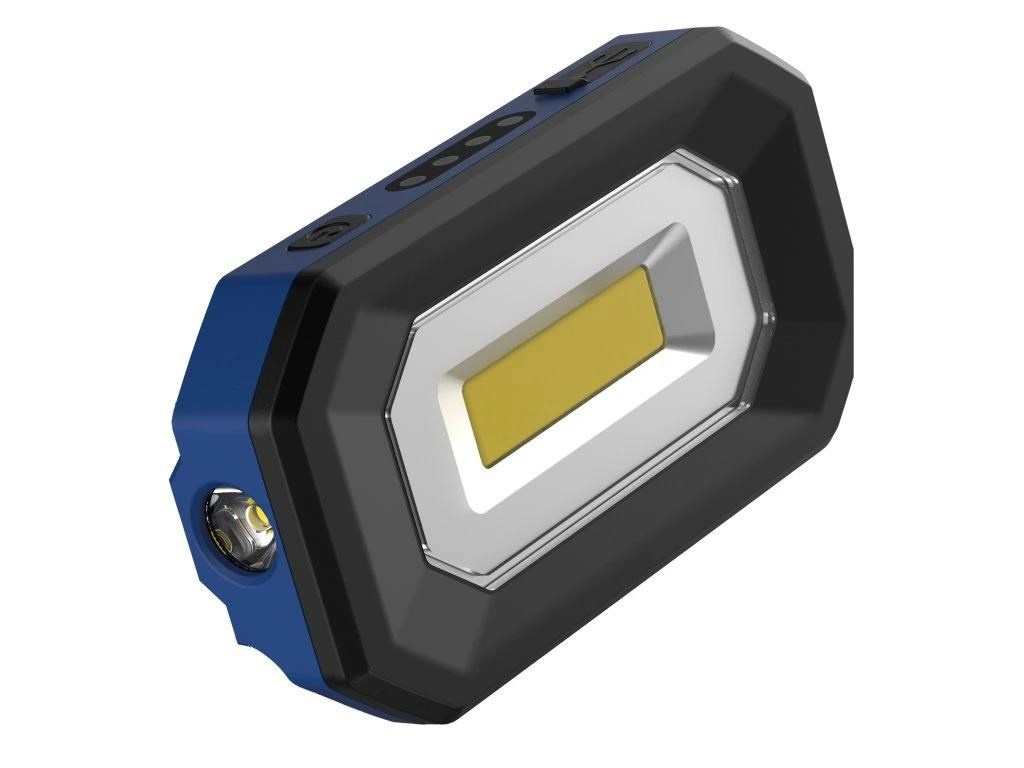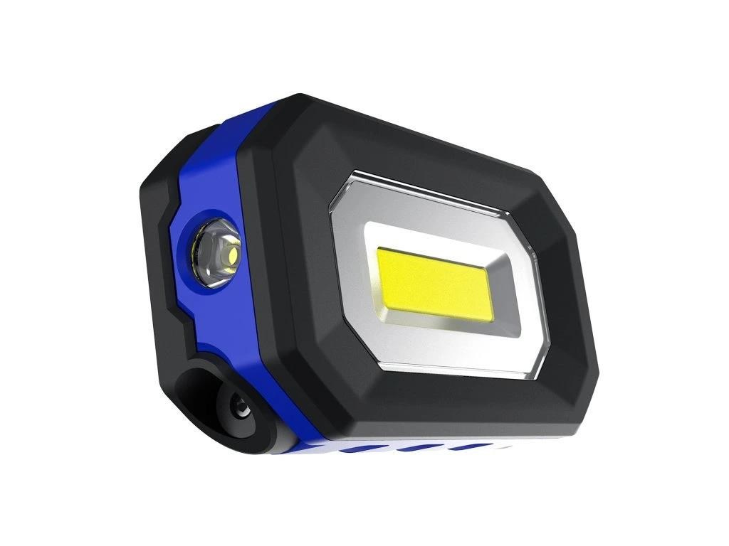 - Dvě světla pro lepší pokrytí: Hlavní světlo (COB): Svítivost až 500 lm pro intenzivní osvětlení pracovního prostoru. Boční kulaté světlo (SMD): 150 lm pro menší, přenosné osvětlení v těsných prostorech.