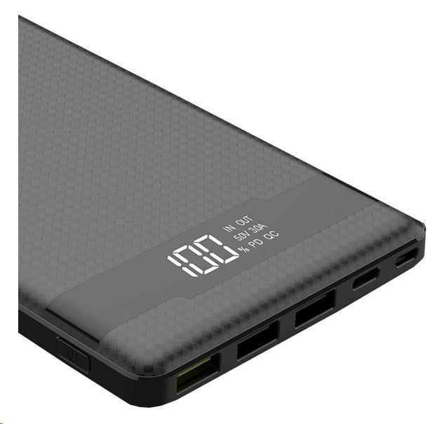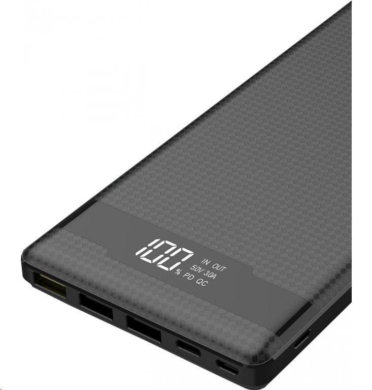 3x vstupní porty Vám zajistí nabíjení powerbanky jakýmkoliv kabelem. Powerbanka podporuje vlastní rychlonabíjení přes USB-C a micro USB a to až 12V!. K nabíjení slouží i Apple Lightning konektor