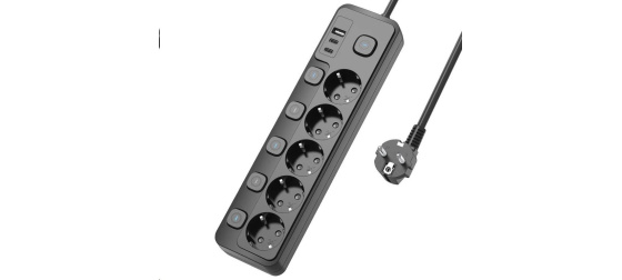 Prodlužovací zásuvka Viking YC53 disponuje 5 AC výstupy a 3 USB porty, což umožňuje nabíjení až 8 zařízení najednou. Díky individuálním tlačítkům ON/OFF pro každý výstup a kompaktnímu designu s kabelem o délce 1,5 m je ideální pro použití ve vaší domácnosti nebo kanceláři.