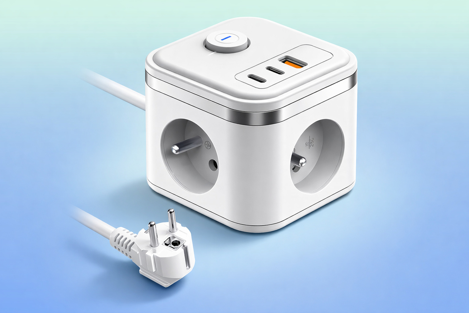 Díky maximálnímu zatížení až 3680 W (16 A) zvládne napájet i náročnější spotřebiče. Současně nabízí rychlé nabíjení přes USB-A (18 W) a USB-C (až 20 W), takže pohodlně dobijete telefon, tablet, powerbanku nebo bezdrátová sluchátka bez potřeby samostatných nabíječek.