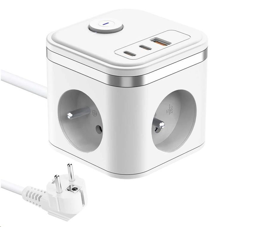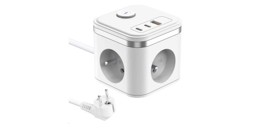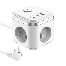 Síťový adaptér VIKING YC33 je praktickou kombinací tří zásuvek a tří USB portů v jednom, který šetří místo a umožňuje napájení až šesti zařízení současně.
