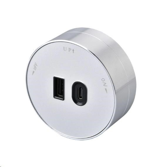 Viking zásuvkový modul A60, 1x USB-A, 1x USB-C, PD, stříbrná
