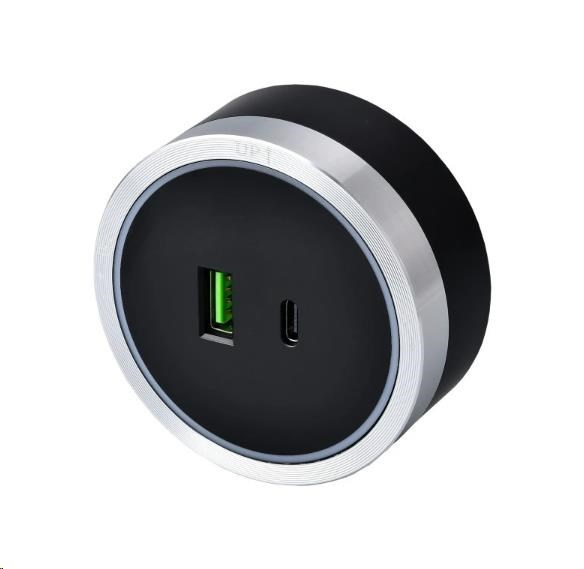 Zásuvkový modul Viking A60 je vybaven jedním USB-A výstupem (5V/2,4A) a jedním USB-C výstupem (5V/3,6A, PD) a je k dispozici ve třech barevných variantách.