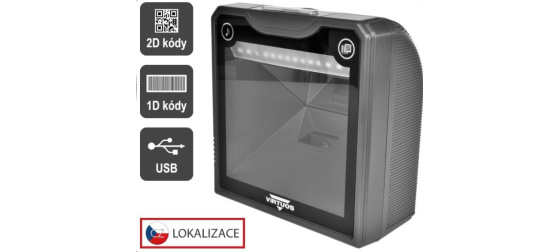 Ideální čtečka pro obchod, s vysokou citlivostí čtení 1D a 2D čárových kódů různé velikosti. Rychlá, všesměrová, stacionární čtečka umí číst čárové kódy z různých povrchů, a to např. i z průhledných obalů nebo displejů, rychle dekóduje i obtížně čitelné, rozmazané a pomačkané kódy. Čtečka je vybavena USB rozhraním umožňujícím emulovat klávesnici i sériový port.