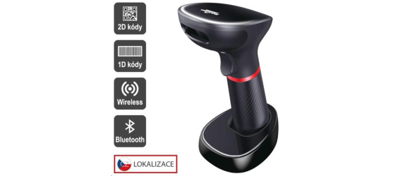 Bezdrátový CCD 2D ruční snímač 1D a 2D čárových kódů. Jedná se o ideální čtečku QR kódů a eReceptů (elektronické recepty), umožňující čtení čárových kódů z různých povrchů a to i např. průhledných obalů nebo displejů. Komunikaci bezdrátové čtečky s připojovaným zařízením lze snadno zajistit díky nabíjecí základně, která se jednoduše připojí k portu USB. Čtečka umožňuje emulovat klávesnici i sériový port.