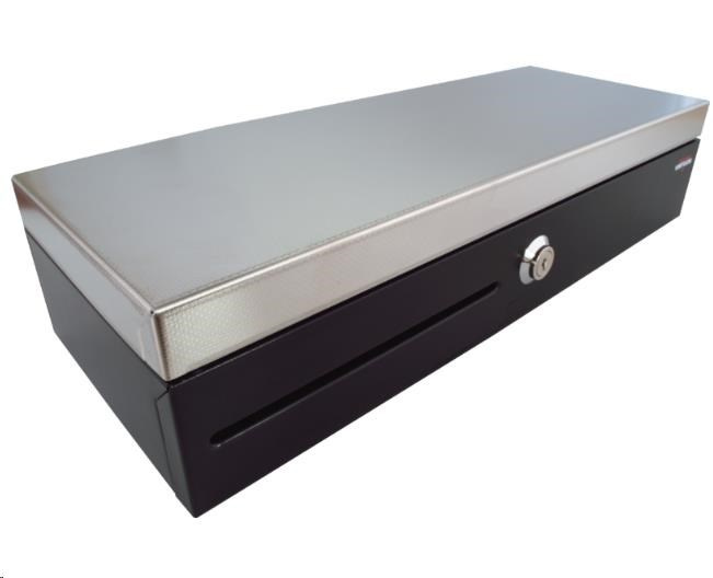 Virtuos pokladní zásuvka flip-top FT-460C2 - s kabelem, se zamykacím krytem, NEREZ víko, černá