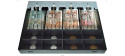 •Přihrádky: 8 × pro mince 4 × pro bankovky - vzhledem k velikosti pořadače se bankovky větší velikosti (vyšší hodnoty od 1000 Kč) umísťují pod mincovník