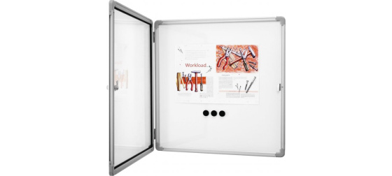 Vitrína Magnetoplan pro vnitřní prostory. Vnitřní čelní stěna bílá magnetická, popisovatelná – velikostně optimální pro umístění 6× A4 formátu. Prosklená dvířka, zámek s dvěma klíči, zadní stěna kovová pozinkovaná. Po obvodu zakulacený hliníkový profil, v rozích spojený šedým plastovým dílem. Dodáváno s montážním materiálem. Rozměry: Venkovní (š x v x h): 870×750×40 mm Vnitřní bílá plocha (š x v): 790×680 mm Vniřní/celková hloubka: 10/40 mm. Holtz Office Support GmbH, Berta-Cramer-Ring 14-16, Wesbaden 65205, DE, info@holtz-gmbh.de