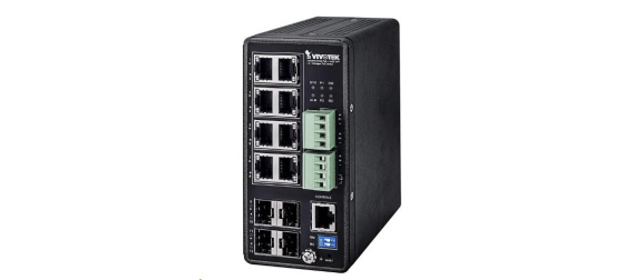 Vivotek AW-IHT-1271, Industriální switch 8xGbe POE (budget 240W, 802.3af/at) + 4x SFP, management L2+,