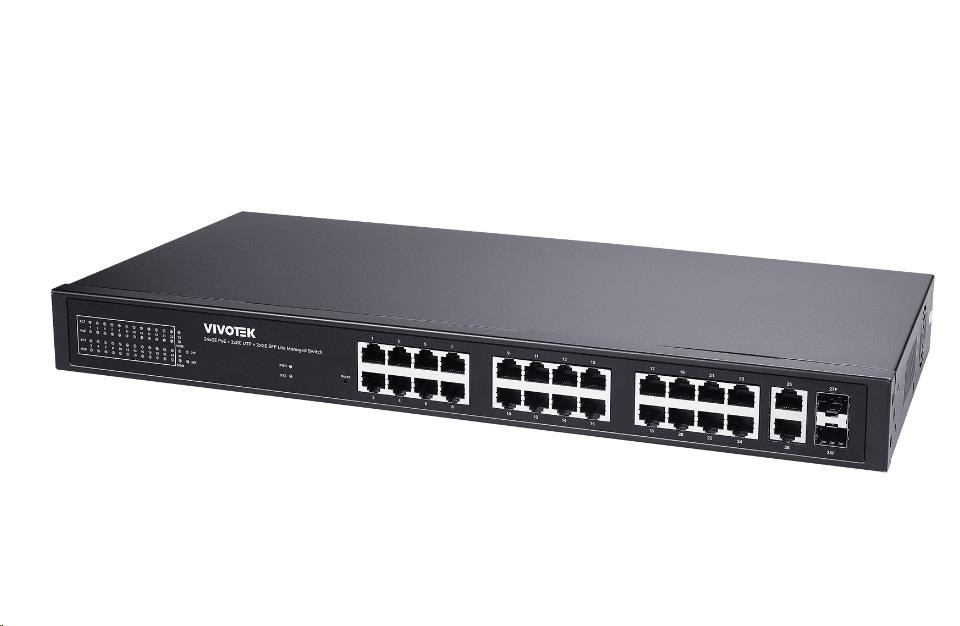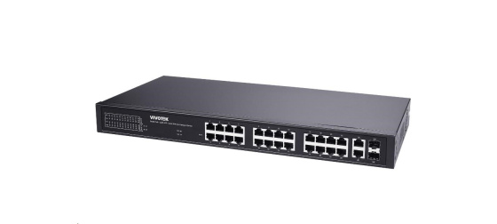 Popis Vivotek PoE switch AW-GEL-285A-380, 24xGE PoE(802.3af/at/bt, PoE budget 380W), 2xGbE RJ-45, 4xSFP 100M/1G slot