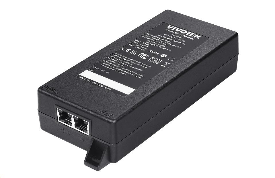 Popis Vivotek vnitřní gigabit injektor PoE napájení (802.3af/at/bt), 90W, ochrana proti přepětí, MTBF 200k hodin