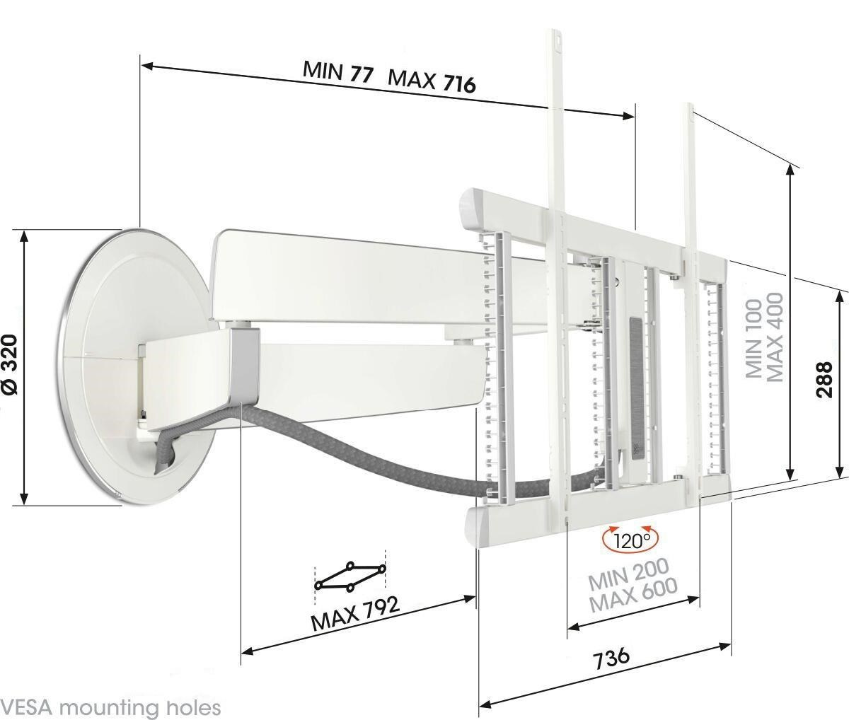 S nástěnným držákem TV DesignMount z řady SIGNATURE vnesete do svého domova absolutní designový zážitek. Tento nástěnný TV držák na televizor vytváří vlastní třídu, pokud jde o design, kvalitu a komfort. Stylový, minimalistický design se dokonale snoubí s nejnovější generací velkých a tenkých televizorů, jako jsou televizory OLED a QLED. Držák je vhodný pro obrazovky o velikosti 40 až 77 palců a s maximální hmotností 35 kg. Pro maximální požitek ze sledování jej můžete natočit až o 120°.