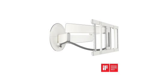 TV držák DesignMount má důmyslný čtyřramenný mechanismus s dlouhými a silnými nosnými rameny. Díky tomu má velký rozsah pohybu dopředu a umožňuje posunout televizor až o 72 cm od stěny. Ideální pro montáž do skříňky nebo výklenku.