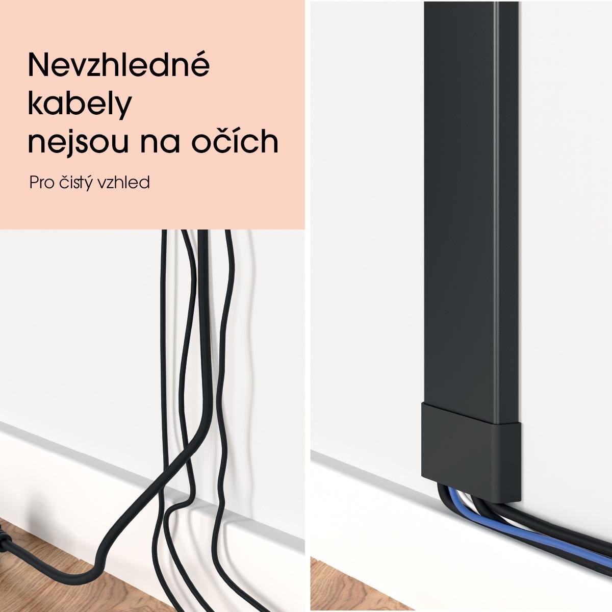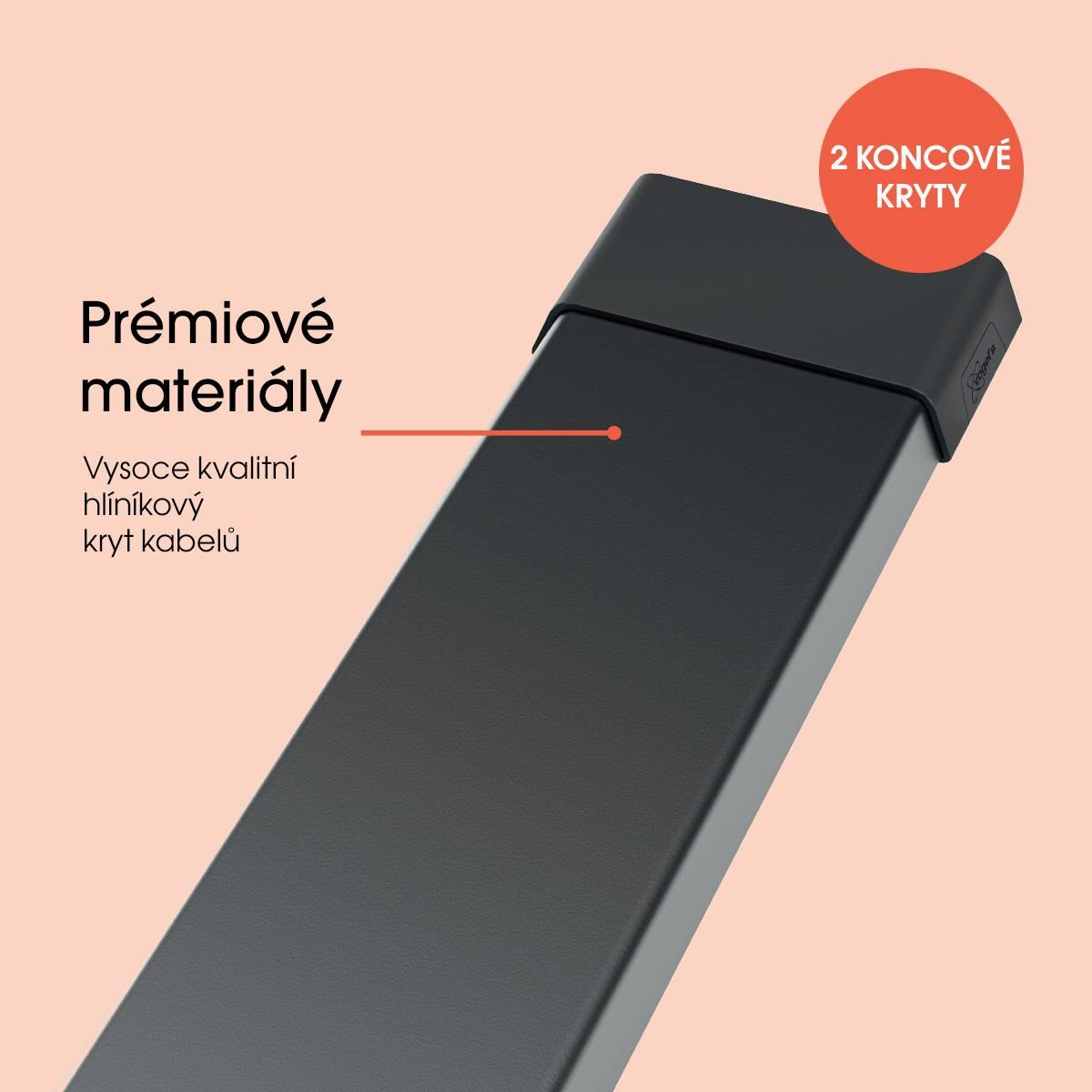 Doplňte svůj nástěnný TV držák televizoru touto lištou. Můžete tak elegantně skrýt kabely u stěny. Hliníkový kryt pojme až 6 kabelů. Je dlouhý 95 cm a lze jej snadno zkrátit na požadovanou délku. Kabelové úchyty snadno vedou kabely pod krytem. Dodávané 2 záslepky umožňují úhledné uzavření obou konců.
