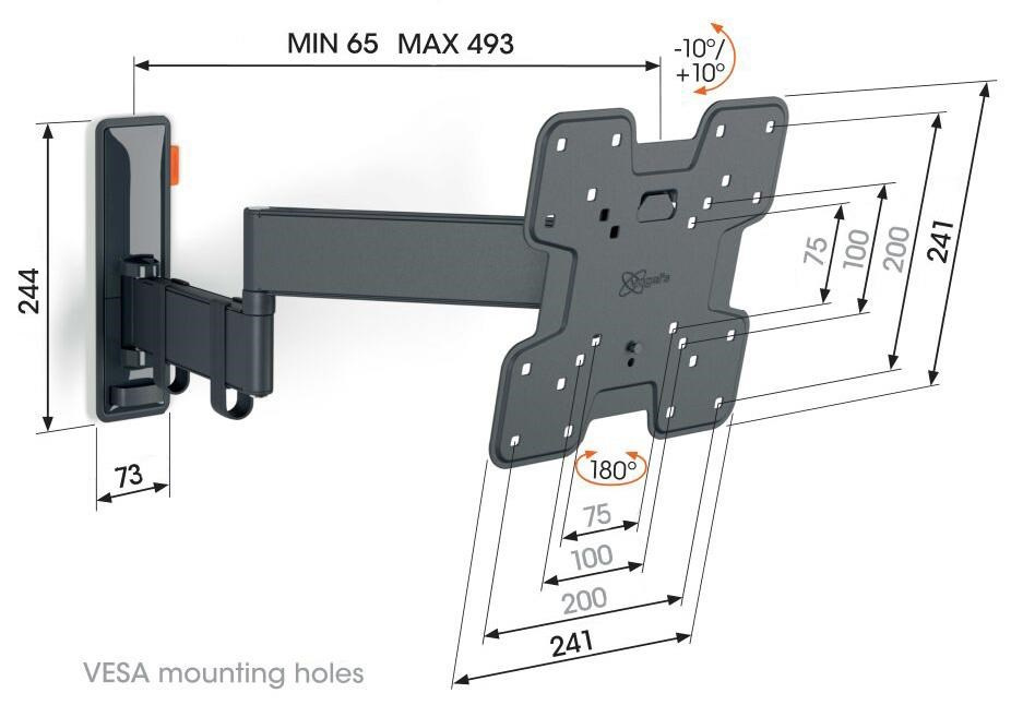 TV 19-43", natáčení 180°, náklon 20°, hloubka 65-493 mm, VESA do 200x200, 15 kg.Více