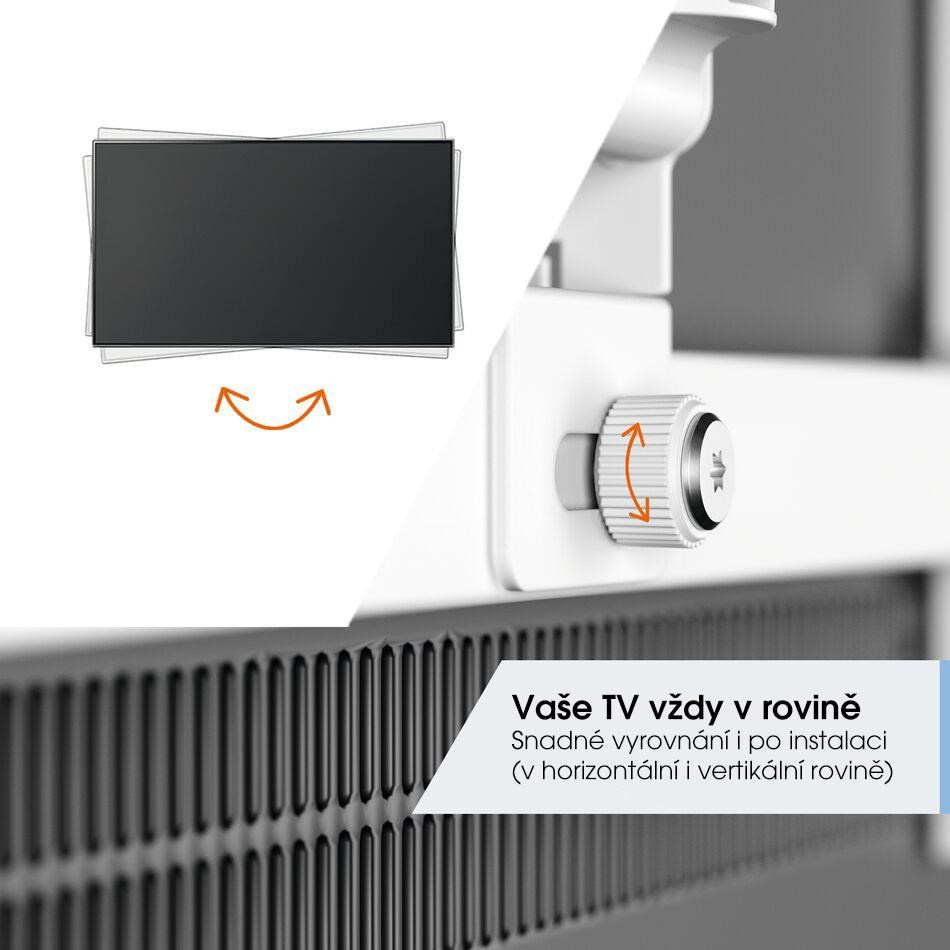 S držákem TVM 3243 si sledování TV můžete vychutnat ze všech úhlů. Maximální úhel natočení do strany samozřejmě závisí na šířce vaší TV, ale klouby držáku umožňují až 180°. Díky funkci One-Finger™ Movement můžete obrazovku otočit do ideální polohy pouhým jedním prstem. Speciální ložiska zajišťují, že se nástěnný držák otáčí mimořádně hladce a snadno.