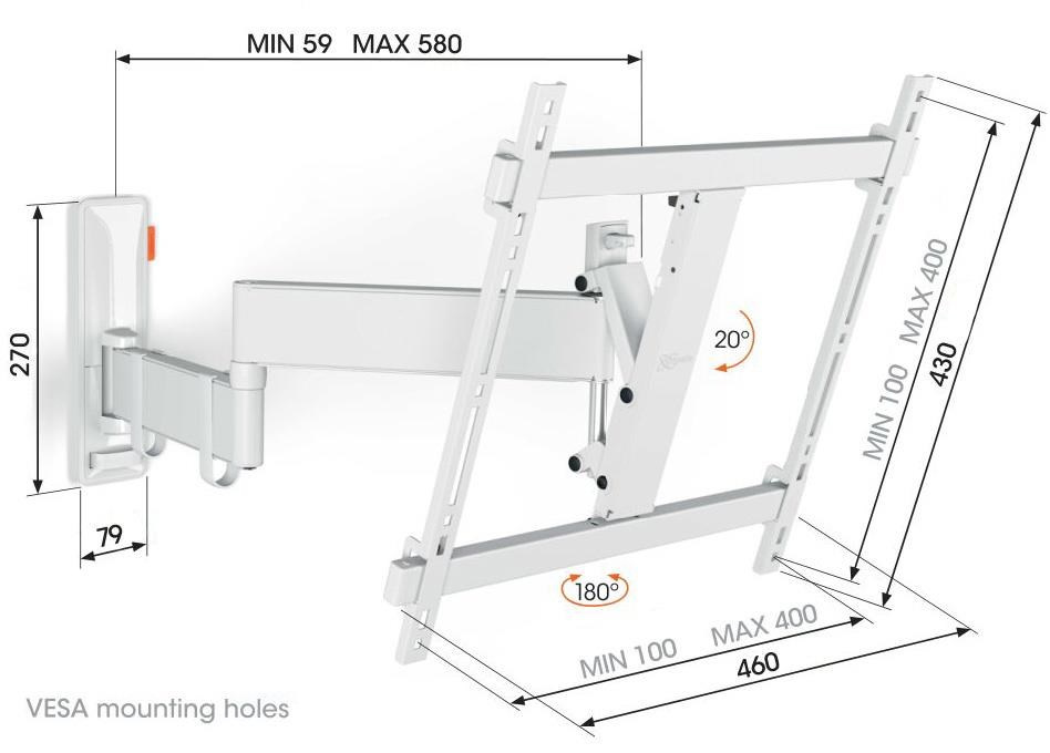 Nástěnné dvojité rameno pro televizory s úhlopříčkou od 32 do 65 palců - bílé