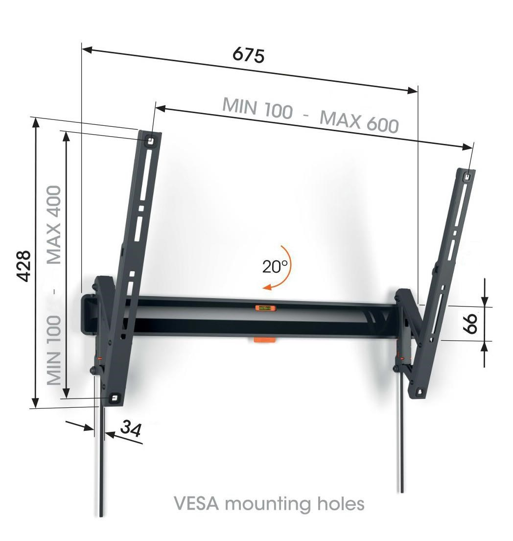 TV 40-77", náklon 20°, hloubka 34 mm, VESA do 600x400, 35 kg.Více