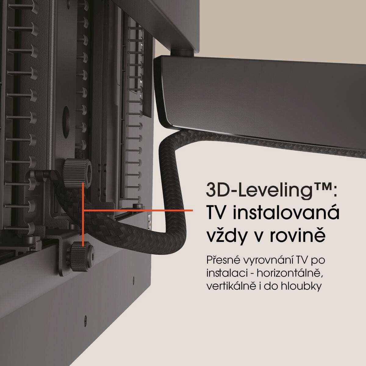 Po instalaci nastavte televizor do dokonalé roviny - vodorovně, vertikálně i do hloubky. Velmi snadno. I při montáži na nerovnou stěnu není jeho vyrovnání žádný problém díky technologii 3D-Leveling™.