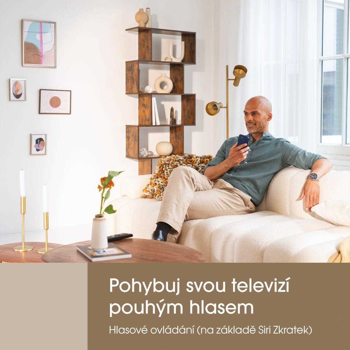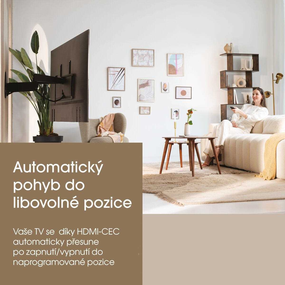 • Automatický pohyb při zapnutí TV, ovládání pomocí hlasových zkratek Siri, aplikace nebo dálkového ovládání.
