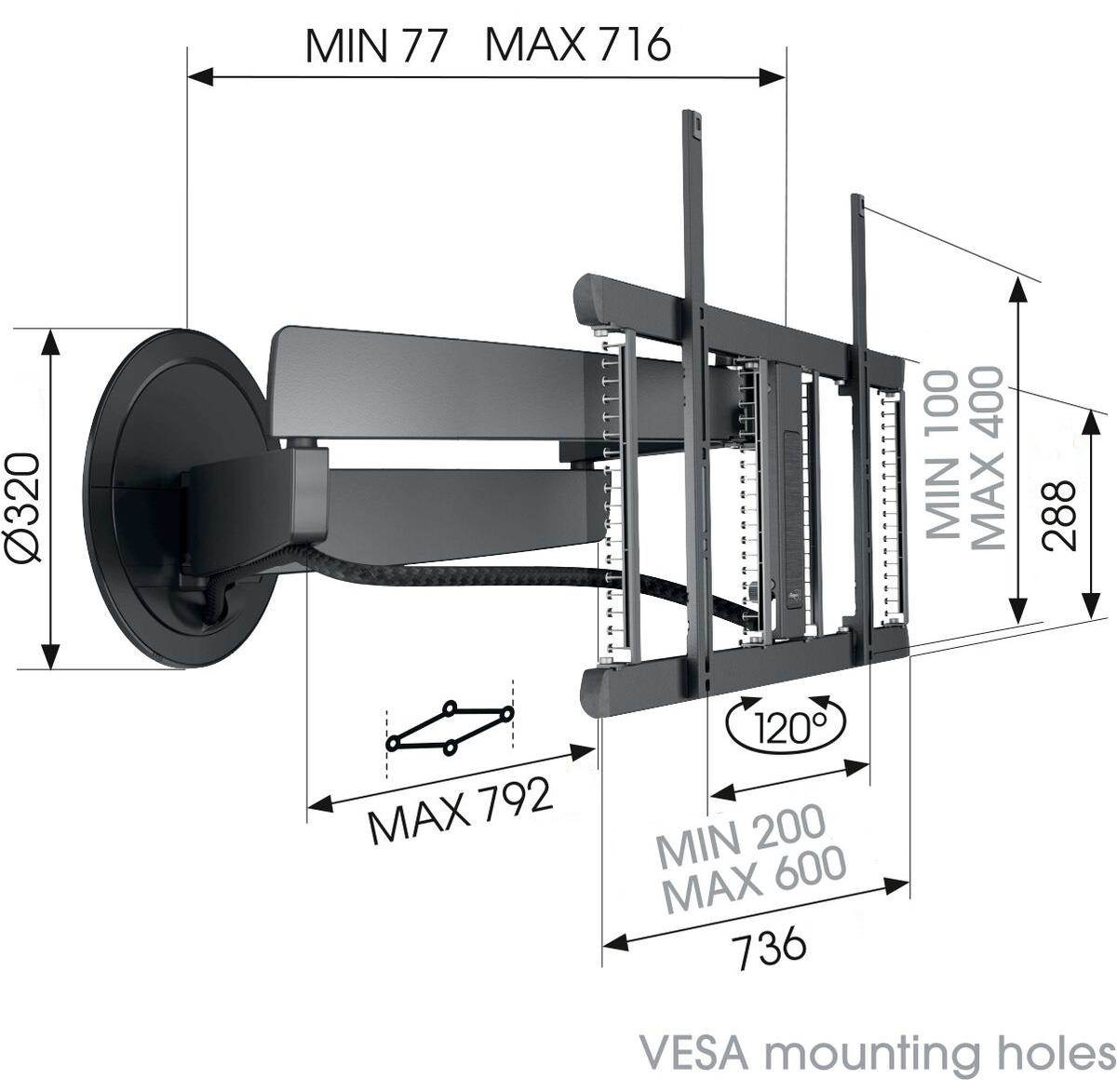 Elektrický, TV 40-77", vytažení od stěny 77-715 mm, natočení ±60°, nosnost 35 kg, VESA do 600x400.Více