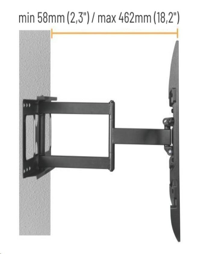 Výsuvný nástěnný držák LPA69-463D je určen pro instalaci TV s plochou obrazovkou s úhlopříčkami od 32“ do 70“. Jeho největší přednostní je robustní výsuvná konstrukce, díky níž unese TV o hmotnosti až 45 kg a zároveň umožňuje nastavit vzdálenost TV od stěny v rozsahu 58 mm až 462 mm, samozřejmostí je pak také velký rozsah polohování. Držák umožňuje snadné naklápění TV v rozsahu +5°~-15°, natočení do stran v rozsahu +90°~-90° a rotaci v rozsahu +3°~-3°, což maximalizuje flexibilitu sledování z libovolného místa v místnosti. Integrovaná svorka na kabely udržuje kabely uspořádané a chráněné.