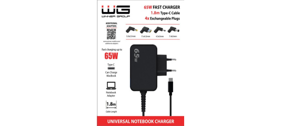 Moderní nabíjecí adaptér pro Type-C notebooky WG 65W dokáže se svými 4 různými přidanými konektory napájet i většinu notebooků, které ještě nemají Type C. Domá Vám tak stačí jedna nabíječka na mnoho různých zařízení, které máte.