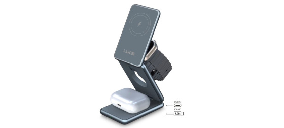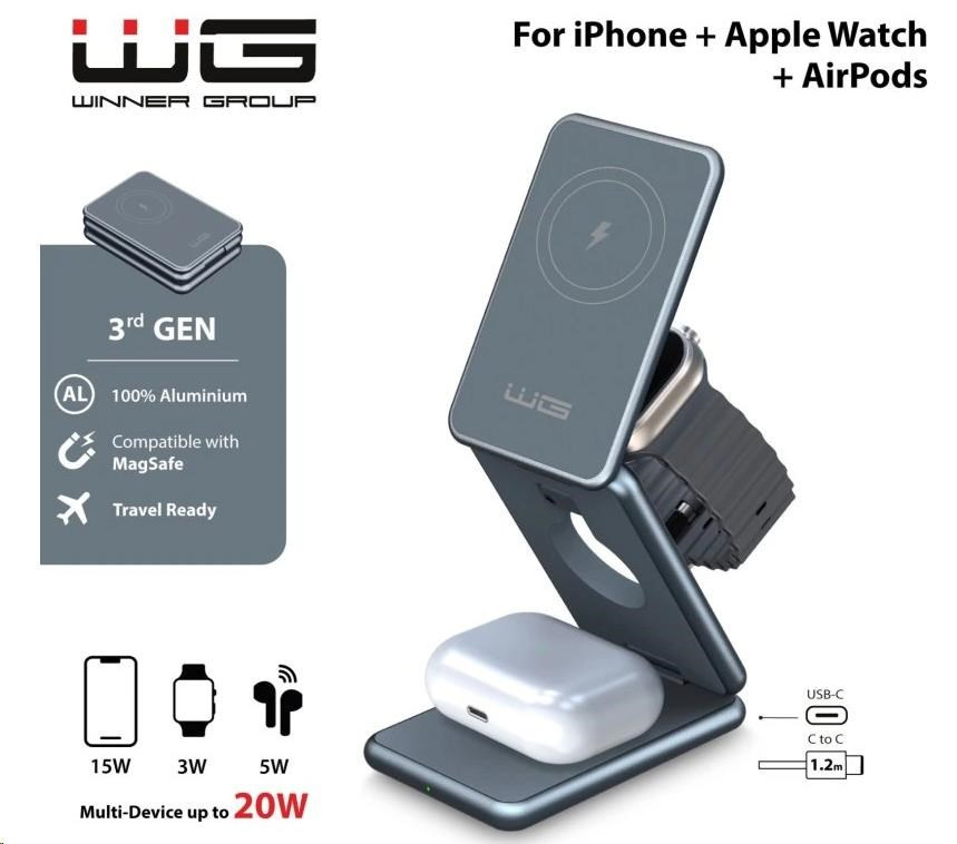 Bezdrátová nabíječka WG 39 Tower of Charge 3v1 (15W+5W+3W) - šedá
