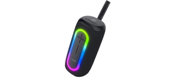 - Vícebarevné LED osvětlení: Reproduktor má možnost měnit barvy LED světel, což vytváří skvělou atmosféru při přehrávání hudby.
